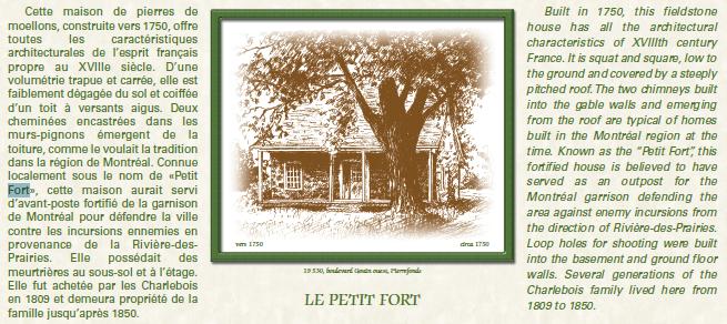 L'accès facile aux pierres des haut-fonds de la rivière Outaouais a influencé l'architecture le long de cette section la plus vallonnée de la piste. Les ruines du Fort Senneville et le moulin à vent ne sont pas visibles de la piste, mais la pierre est présente tout autour dans les murets délimitant les terrains et dans les murs des grandes maisons. |