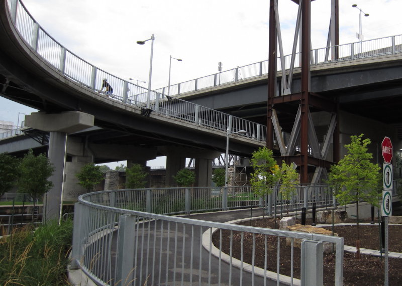 La piste s'élargit à ce point en une chaussée désignée et permet d’apprécier les vues panoramiques du Lac Saint-Louis. The trail widens at this point by dedicated cycling and walking paths to enjoy the great water views. |