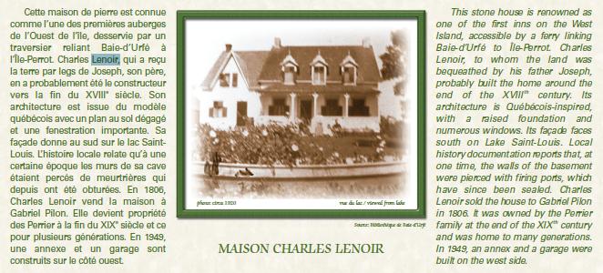 Utilisez la carte du Circuit patrimonial à vélo de l’Ouest-de-l’Île et les enseignes installées le long du parcours pour découvrir les maisons qui y sont identifiées. Parcourez les 70 kilomètres du Circuit le long du Lac Saint-Louis, des rivières Outaouais et des-Prairies. Revivez l'histoire et découvrez l'architecture de l’Ouest-de-l’Île. Admirez la nature, les parcs, le paysage magnifique et plus de cent bâtiments patrimoniaux. Ces maisons, églises et bâtiments commerciaux ont été construits dans divers styles dont le style français des XVI, XVII, XVIII siècles et le style québécois. Use the map to follow the trail to view the posted signs at the sites of the listed houses. Re-live history and discover the architecture of the past with the Heritage Bicycle Trail. Travel 70 kilometers along Lac Saint-Louis, the Ottawa River and Rivière-des- Prairies. Enjoy nature parks, magnificent scenery and over a hundred heritage buildings. The repertoire of highlighted heritage architecture includes French inspired XVI, XVII, XVIII th century and Quebecois Style farm homes, churches and trade buildings as well as numerous examples of later period architectural styles. |